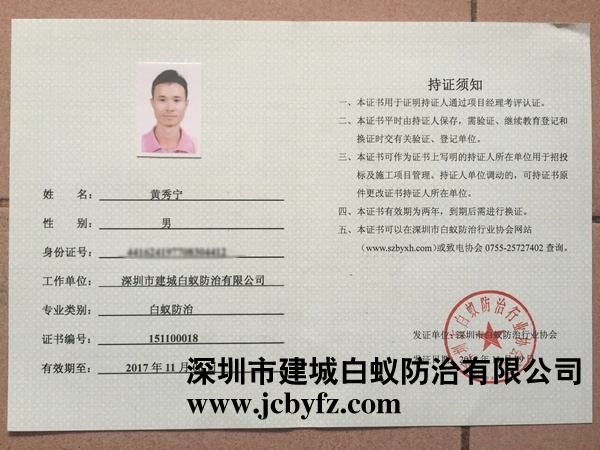深圳白蟻防治上崗證書