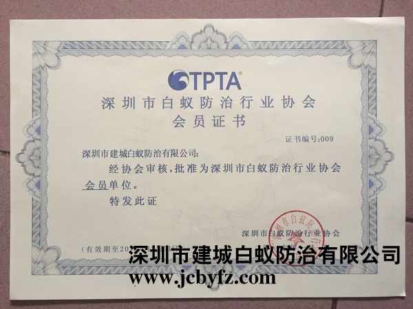 深圳白蟻防治協會會員證書